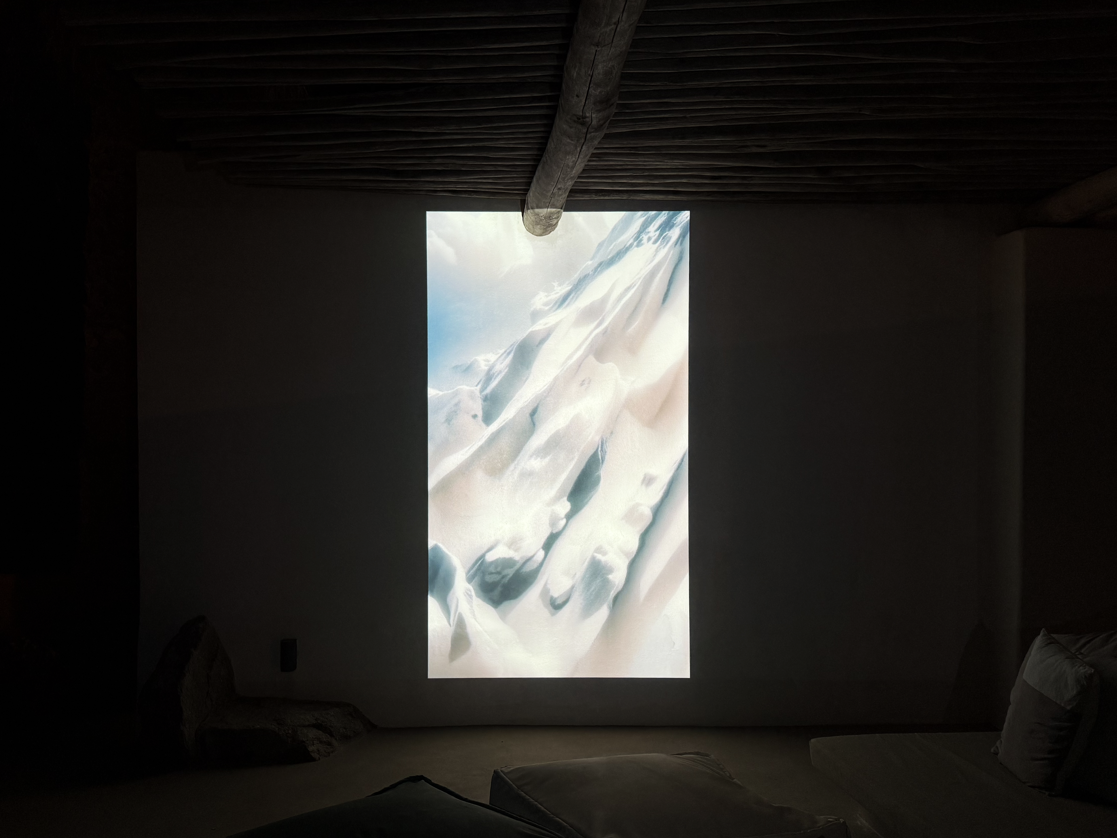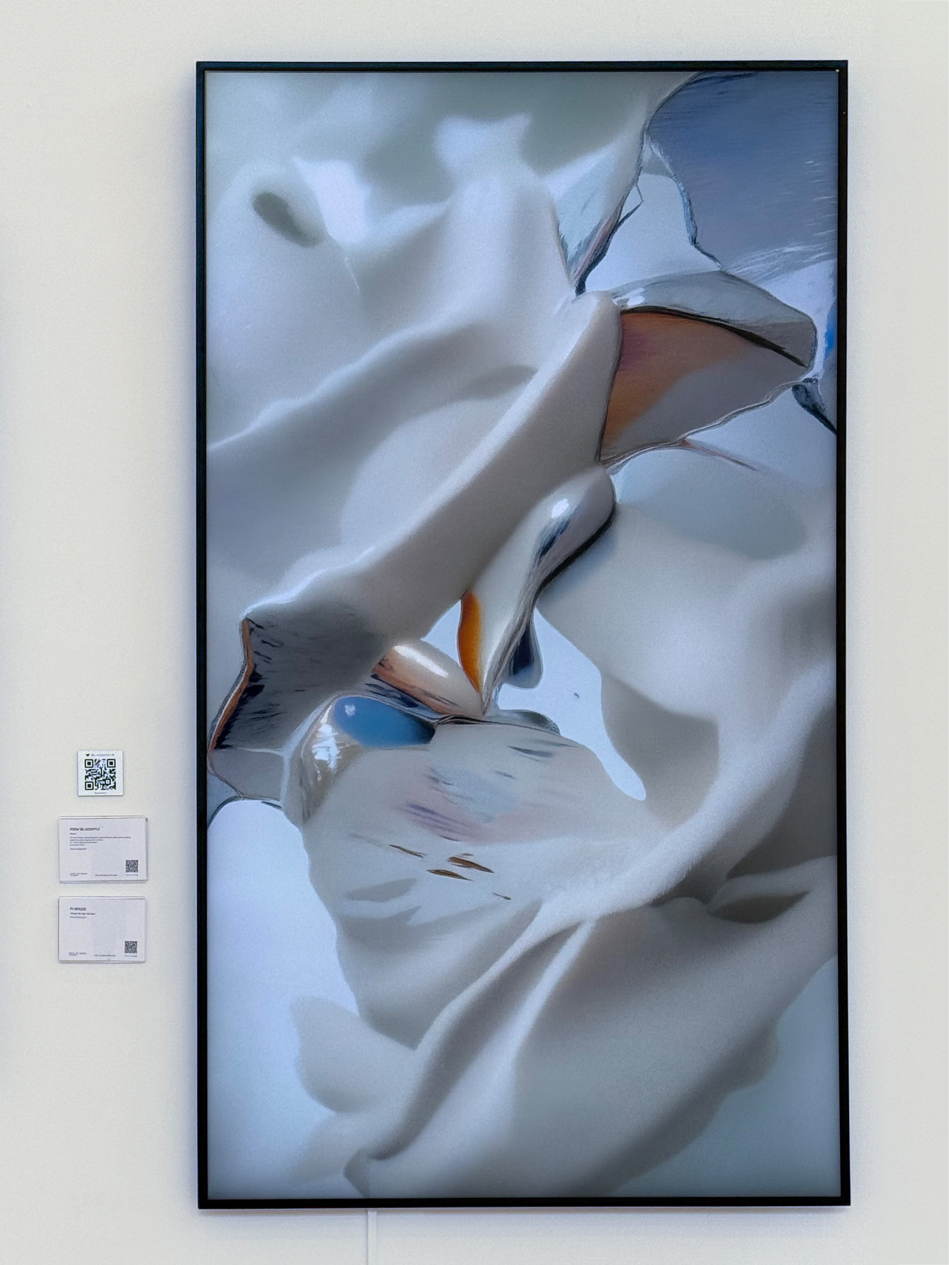 Built from custom AI workflows, the work stages a sequence of shifting environments where forms seem to anticipate themselves, unfolding in ways that blur the line between emergence and recall. These two domains—human cognition and machine prediction—collapse into one perceptual field: landscapes, patterns, and fragments of motion appear to arise from the viewer's own act of looking, as if perception itself were shaping the terrain.